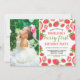 Berry First Strawberry 1:a födelsedag Fotoinbjudan Cute flicka 1:a födelsedag med fotokort med Anpassningsbar av jordgubbar.