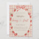 Celebrate your little sweetheart with this adorable Berry First Birthday invitation featuring soft pink gingham, watercolor strawberries, delicate daisies, and a sweet bow frame design.