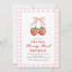 Berry första jordgubbsfödelsedag med rosa båge och rosa gingham.