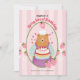 Med rosa rand, jordgubbar och en näsig björn är denna inbjudan en fullt av charm och perfekt för din lilla stora dag. (AI-genererad teckning)