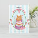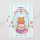 Med rosa rand, jordgubbar och en näsig björn är denna inbjudan en fullt av charm och perfekt för din lilla stora dag. (AI-genererad teckning)