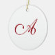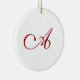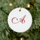 Brött elegant-skript i monogram julkeramiskt prydnadsämne. Anpassa med ditt familjs monogram eller det monogram du vill ha av ett älskat barn. Designad för att matcha vår berry Red jul Monogram Bauble Collection.