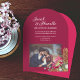 Placera enkelt skörd och ditt foto på den här bärrött och guld bröllopsinbjudan med kung-proteablommor. De här fotobröllopsinbjudningarna samordnas på ett utmärkt sätt med matchande kuvert, retur-adressetiketter och party-förråd. Mångsidig för vild bär, tranbär eller körsbärstema färg!