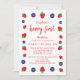 Berry söt 1:a födelsedag med jordgubbar och blåbär med picknick stil bakgrund.