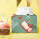 The deep sage green background provides a sophisticated contrast to the vibrant reds and creamy tones of the cake illustration, while the elegant "Happy Birthday" script adds a classic celebratory touch. Whether you're wrapping a gift for a best friend, a family member, or a fellow foodie, this high-quality paper sets the perfect mood for a celebration.