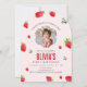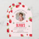 Ett sött firande ligger precis runt hörnet med den här charmerande jordgubbsinbjudan på första födelsedag! Designad för din lilla flickas stora dag har inbjudan jordgubbar med vattenfärg, mjuka rosor och en rundad båge för en frisk, modern känsla. Ditt barns foto går i centrum, skapar det personligt och ger familj och vänner hjärtan. Redigera enkelt texten med Zazzles intuitiva verktyg för att matcha dina party-uppgifter. De här inbjudningarna är tryckta på högkvalitativ papper med pulserande fullt-färg-design och gör det enkelt att planera och snyggt. Pair med koordinering av jordgubbsdekretet party för att slutföra temat. Börja skapa din speciella dag på några minuter!
