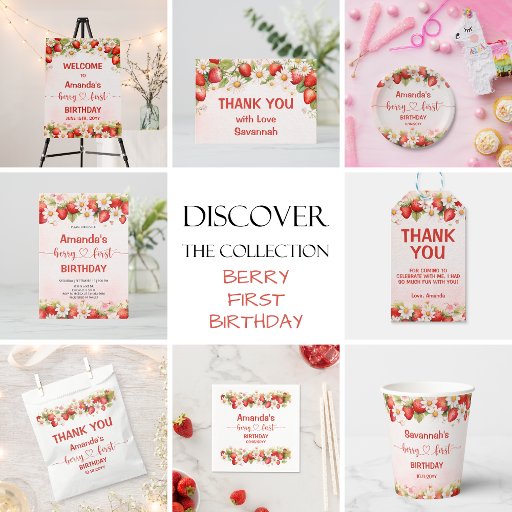 Designed with watercolor strawberries, soft florals, and a warm pink background, these tags are perfect for thanking guests after a first birthday celebration. The playful yet polished design works beautifully when tied onto favor bags, gift boxes, treat jars, or wrapped presents.