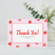 Skicka ett hjärtligt tack med den här babyduschen. De här korten har en söt jordgubbsrelaterad bakgrund och mjuka toner och matchar perfekt en giftig jordgubbsbabydusch. Utformningen är enkel att anpassa med ditt meddelande och är tillgänglig som tryckta kort.