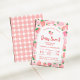 Söta flicka-babyduschinbjudan till rosa jordgubbar.