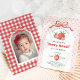 Berry Sweet Strawberry Red Bow Birthday Photo Inbjudningar