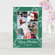 Julhälsningskort med en grönt fotokollage på omslaget, där du kan lägga till fem av dina egna foton. Berry twigs i vitt täcker hälsningskortet. Lägg till din familj namn och året!