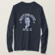En porträttteckning av Alexandria Ocasio Cortez i blått, med, text "för beryktad AOC". T-tröja svettar, noveltygåvawares.