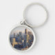 Beskåda av cityscape med fantastiskt ljust rund silverfärgad nyckelring