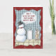 En tecknad Julhälsningar kort med en tecknad av Snögubbe och kanin med hjälp av offentliga inrättningar. Insidan av kortet lyder helt enkelt: "Glad helg!"