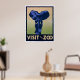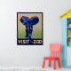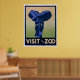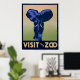 Vintage affisch som befordrar djurparken som ställe att besöka och visar en elefant.