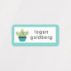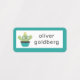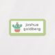 Kaktus klädetiketter för dina barn med söt kaktusch sitta i blomkrukor och med glasögon. Varje kaktus har en blomma på huvudet som en liten prins krona. Etiketterna har gräns i teal och grönt.