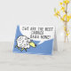 Roligt illustration av ett får på ett kort med texten på framsidan: "Ewe are the best Cashier baaa none!" En pun på ett fåras blekning. En underbar kortidé för att hylla en professionell. Anpassa inuti med ditt eget meddelande.