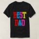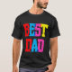 as T-Shirt hat den Titel “BEST DAD” und zeigt ein auffälliges Design mit dem Schriftzug “BEST DAD” in großen, blockigen Buchstaben. Die Buchstaben sind in Rot, Blau, Gelb und Pink gefärbt und haben eine abgenutzte Textur mit Spritzern und Flecken. Dieses Design eignet sich hervorragend für Produkte, die die Vaterschaft feiern, wie zum Beispiel zum Vatertag oder Geburtstagen.