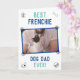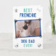 Frenchies, visa Pappa lite kärlek i Far med ett kort för personlig från dig. Ladda upp ett foto som du själv eller med ditt humana (4 x 5 tum fungerar bäst). På kortets framsida står "Best Frenchie hund Pappa nånsin". Inuti meddelandet står det "I kärlek mer än walkies, Lycklig Far's Day". Utformningen innehåller handritade illustrationer av ett hund, ben, hund och hund. Teckensnitt och färg och ändras.