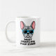 Den här fransken är bulldoffkaffe mugg som ger perfekt Fars dag en gåva till varje frenchie Pappa. Utformningen har en illustration i tecknad stil av en blå fransk av rödtunga med solglasögon i färgad med texten "Best frenchie Pappa ever!" Utformningen är densamma på båda sidor om mugg och ordalydelsen kan ändras till spelar ingen roll som du vill.