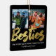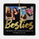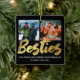 Personligens bästa vänner christmas-prydnadsföremål med en trendig svart bakgrund som kan ändras till valfri färg, ord "besties" i ett faux-skript i guld, ett citattecken i vänskap, namn och två fyrkantiga foton på båda sidor.
