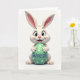 This card features a front-facing bunny character with long ears and soft white fur, sitting centered on a plain white background 🐰. Its big blue eyes and gentle smile, along with rosy cheeks and a small pink nose, give it a sweet, affectionate look like it’s posing for someone it cares about. Light shading and soft lighting add a springtime glow without adding extra scenery, keeping all attention on the character. In its paws, the bunny holds a bright green Easter egg decorated with small white polka dots, cradled carefully as if it’s a special gift. The word “GRANDSON” appears across the middle of the egg in medium-blue lettering, standing out clearly against the green. With the bunny’s warm expression and the egg held close, the scene suggests a close bond and a friendly, family-focused moment 🌷. The bunny sits upright in the center, with the green polka-dot egg angled slightly forward so the blue “GRANDSON” text is easy to read.