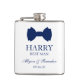 De här 6 oz-flaskorna är en stor tjänst för den bäste mannen i ditt bröllop. Om din bröllopsfest ska bära kostymer med flugor så skulle den här designen med en traditionell dubbelbågsslips i blått vara perfekt. De skulle vara bra för en reklamfest eller helg.