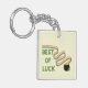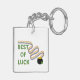 Best of Luck Greeting with 4-leaf clovers and rainbow stripes leading to pot of gold coins