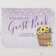 Vänligen skriv under vår gäst bok, land-dagen med accentskylt från bröllop med vattenfärgsregnfat eller återanvända fullt av solblommor från vin med strängträ från ljus och laduvirke i lila. Perfekt för vinodlingen bröllop i land.