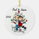 En nätt runda som den keramiska minnessakjulen semestrar prydnadsärdrag en stick figur kopplar ihop att förvänta en bebis som framme står av en dekorerad julgran med två katter, en vit med svart, pricker, en som är svart, och text, som läser "oss, förväntar!". Du kan personifiera denna gulliga stick figurprydnad, genom att tillfoga ditt namn och strömår!
