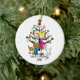En gullig rolig keramisk prydnad som presenterar en förväntansfull stick figur, kopplar ihop, en brun hund, och en vithund, ett helgdagträd och en text, som läser "oss, förväntar!", med ett område kan du tillfoga strömåret!
