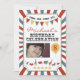Beställnings- fotocirkusfödelsedagsfest inbjudan -- handla demofotoet till en bild av ditt primat. Varje cirkusinbjudan låter också dig ändra numrera på ballongen till hur gammalt ditt barn ska är för hans eller henne födelsedagen. Cirkusinbjudan dekoreras med randar, stjärnor & standerter i gammalmodiga deppigheter, gula och röda. Giraff, lejon, apor, rhinos och elefanter tillfogas också för ökad dekor.