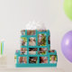 Foto för contemporary som och beställnings- för familj för roliga ljusa turkospåfågelblått slår in papper. Tillfoga dina foto till detta gulliga papper för att göra en unik gåvasjal för något speciellt tillfälle.