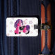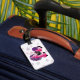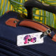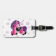 Beställnings- gullig lite rosa ponny med hjärtabagagemärkren, personlig med namn och telefonnummer.