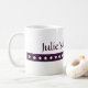 Personlig mugg för Julies kopp av tea. Du kan använda textfälten för att personifiera den med ett olikt namn eller för att ge någon ett smeknamn och en olik dryck för kaffe- eller kakaoälskare. Använd skräddarsysärdragen för att ändra stilsortsstilen, storleksanpassa eller färga.