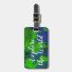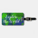 Beställnings- märkre för världskartabagage med reser citationstecken. Designen för jordklotet för vintageplanetjord med snyggt borstar typografimallen. Undersök världen, ditt äventyr väntar på! Personligetiketter för hänger lös och resväskor. Gullig födelsedaggåvaidé för internationell handelsresande och utforskare. Tillfoga din adress på baksidaen eller tillfoga en visitkort. Inkluderar läder fäster för tillbehör.