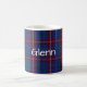 Underbaren tittar den skotska klanmuggen som gjordes i det blått, röd och svart för klassiker för den klanGlenn tartanen för plädet mönster för grönt. Vittext i vit läser Glenn och kan personifieras för att läsa vad du önskar.