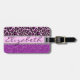 Chic och flickaktigt purpurfärgade och rosa leopardtryckfläckar med fauxglittersparkles på grunden. Centrera lämnas för monogrammärkning/personifierar omgivet med vitdiamantrhinestones. Baksidaen är klar att skriva in ett telefonnummer. (Fototryck).