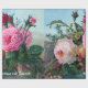 För vintageVictorianro alla skuggar beställnings- slående in pappra härliga ro av rosor, orange och rött på blåttbakgrund med gröna löv med antik look som du kan personifiera den med ditt egna namn