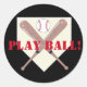 Visa din sportiga stil med dessa themed klistermärkear för baseball. Denna design presenterar korsade baseballfladdermöss, och en boll över ett vithem pläterar. Något att säga för anpassadestandardtext leker boll i rött tryck på en svart bakgrund. Denna design är fullständigt anpassadet! Du kan redigera text- och stilsorts- eller bakgrundsfärgerna, om du önskar. Slå precis Personalize knäppas för att skriva in din egna text, eller att slå Customize knäppas för att göra någon stilsort eller för att färga ändringar och göra den din! Gör en underbar dekoration eller gåva för sportiga ungar och baseball, softballet eller barnserien i basebollspelare.