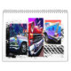 Personligen skrivev ut kalendern med beautifully sätta en klocka på grafisk design för klassikerbil.