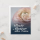 Die Nahaufnahme einer pinken Ro auf blauem Hinergrund und Muttertags- oder Geburstagsgrüßen. Die restliche Fläche der Karte ist frei gestaltbar. deutsch