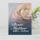 Die Nahaufnahme einer pinken Ro auf blauem Hinergrund und Muttertags- oder Geburstagsgrüßen. Die restliche Fläche der Karte ist frei gestaltbar. deutsch