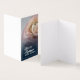 Die Nahaufnahme einer pinken Ro auf blauem Hinergrund und Muttertags- oder Geburstagsgrüßen. Die restliche Fläche der Karte ist frei gestaltbar. deutsch