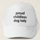 Bestilig, barnlös hund, modern typografi, vit dam keps