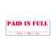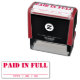 Denna gummidesign i frimärke innehåller meddelandet "BETALAT I FULLT", tillsammans med en linje där det betalat datumet kan skrivas. Den kan användas för att markera att en faktura eller faktura har betalats.