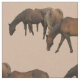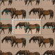 Denna djura tygdesign presenterar en abstrakt tolkning av betande bruna hästar i en upprepande mönsteruppsättning på en beigesolbrännabakgrund. Skräddarsy lätt bakgrundsfärgen för att passa din sakkunnig projekterar.