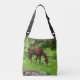 Den här allsidiga bäraren har en häst som betar på en betesmark i Connecticut under våren.