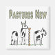 Pastures New tecknad visar en tjur som distraheras av kon nästa fält. För alla som tänker på flytta på, planerar en ny åtgärd osv.