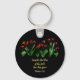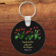 Bibelspråk ”Betrakta fältets liljor, hur de växer;” Nyckelring med handritad konst på svart bakgrund. Anpassa med ditt namn och bakgrundsfärg med hjälp av verktyget ”Redigera design”. Njut!